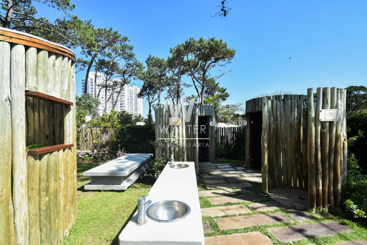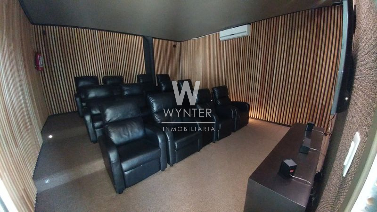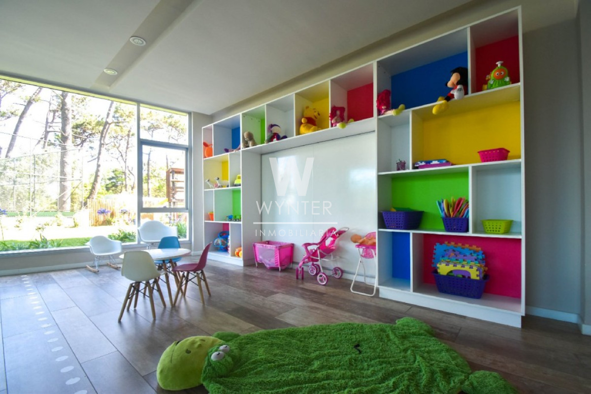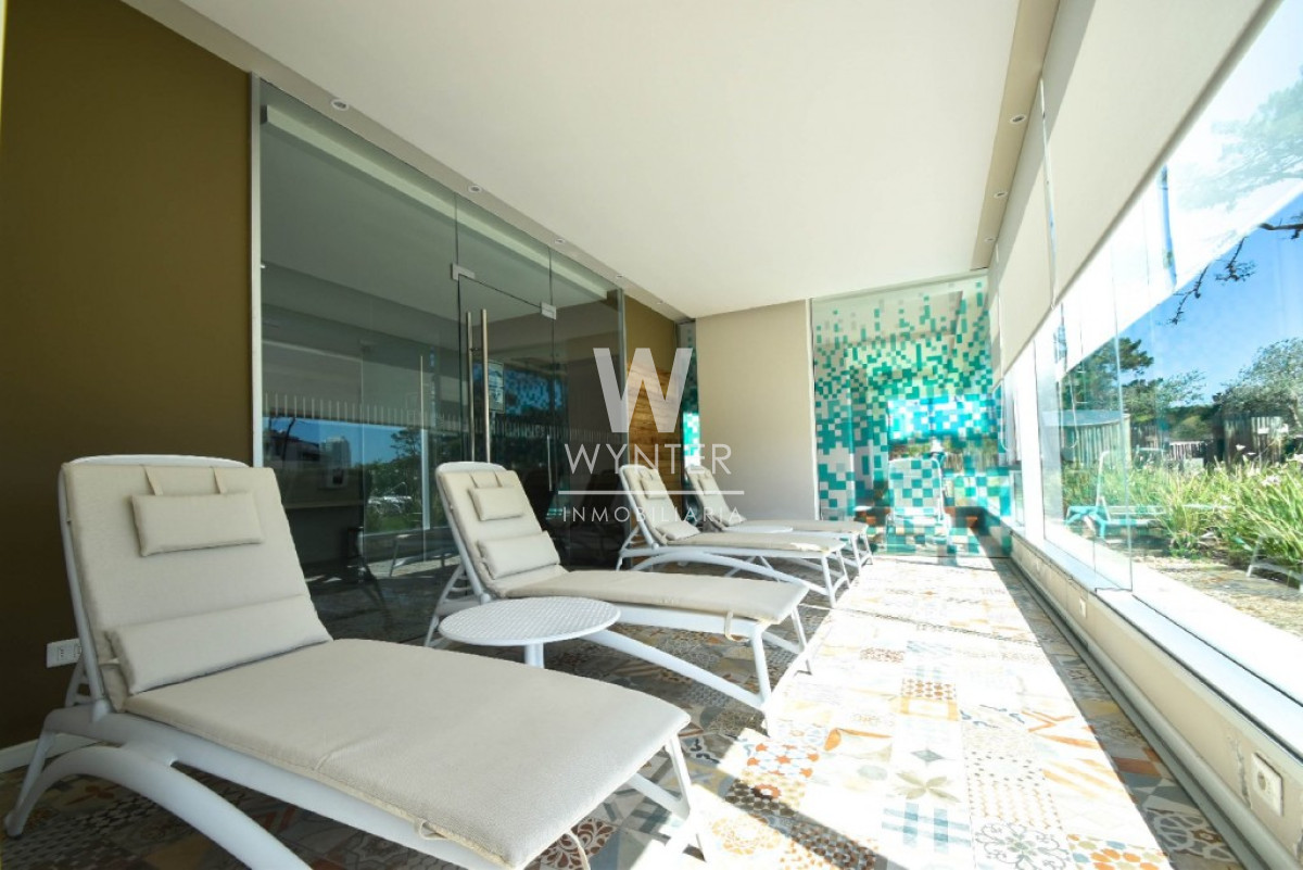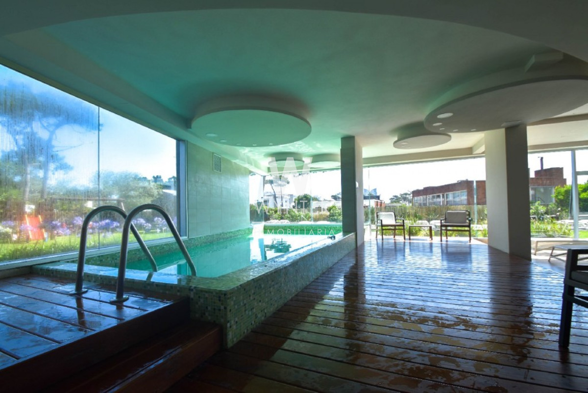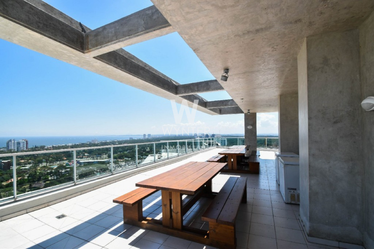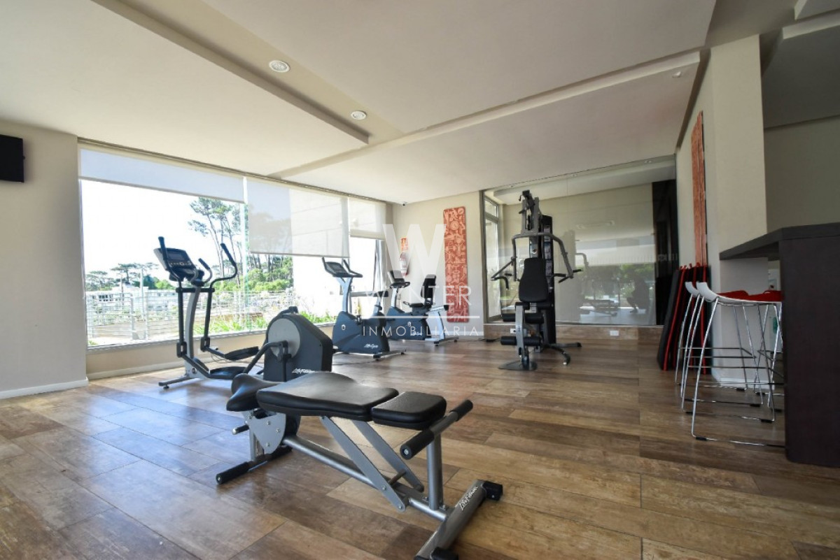 El edificio cuenta con recepción y vigilancia durante las 24 hs, servicio de mucamas una vez a la semana, sala de juegos para niños y adolescentes, gimnasio, sauna, piscina abierta y cerrada climatizada, microcine, juegos para niños al aire libre, cancha de tenis y barbacoas en el último piso con espectaculares vistas.