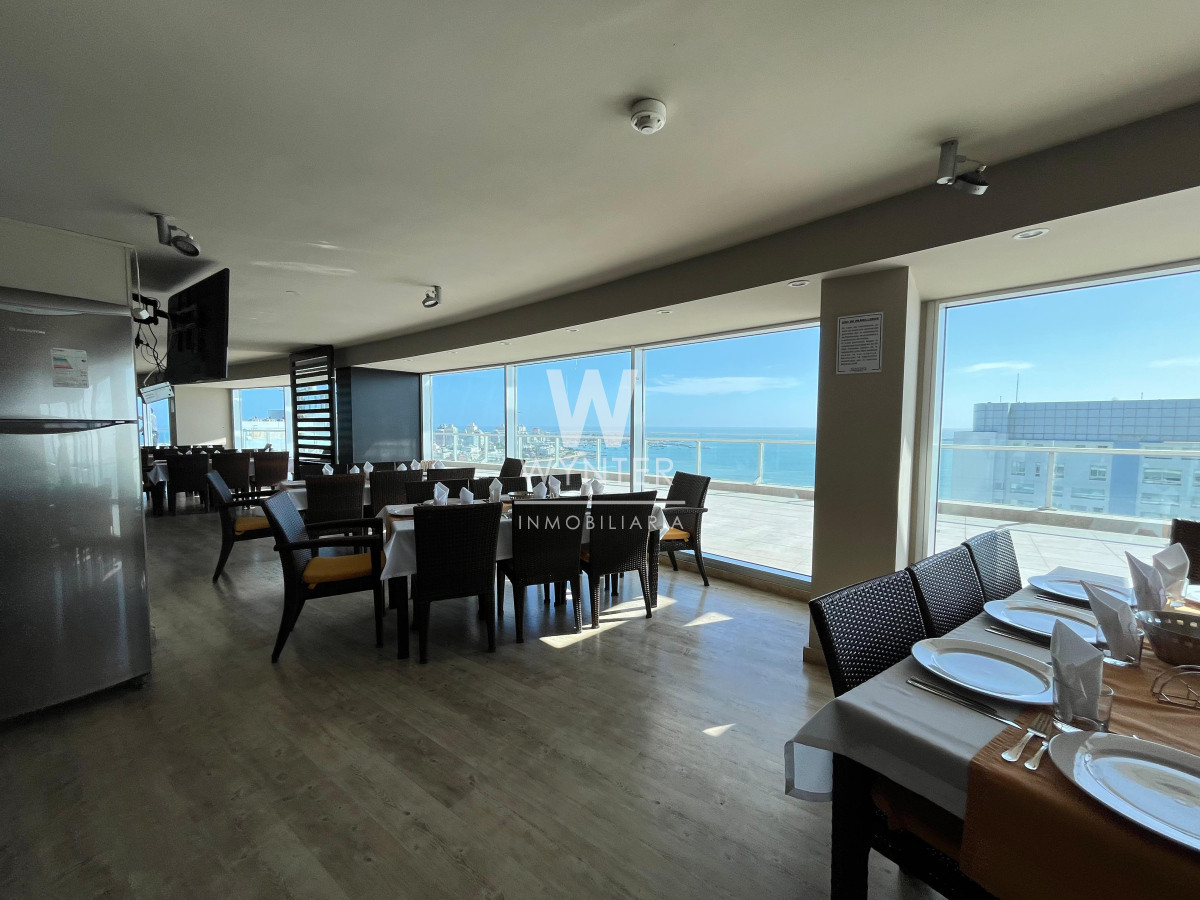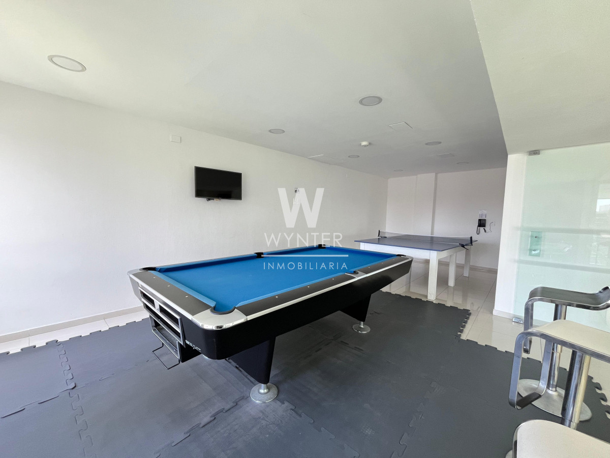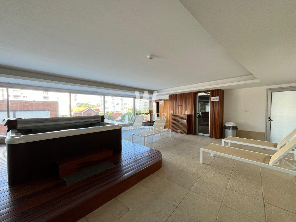 El edificio cuenta con recepción las 24 horas, servicio de mucamas, servicio de playa en verano, sauna húmedo y seco, sala de masajes, gimnasio, sala de juegos con ping pong y pool, sala de juegos para niños. En el piso 24 encontramos una sala de audio, sala de negocios, barbacoa y club house. En la planta baja cuenta con 4 parrilleros cerrados, cancha multifunción de césped sintético, piscina abierta climatizada y cerrada climatizada.