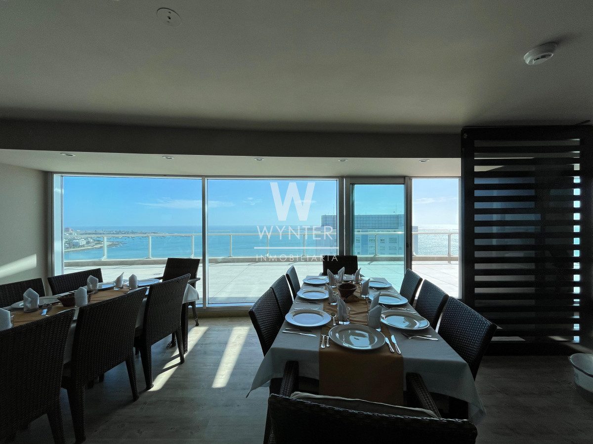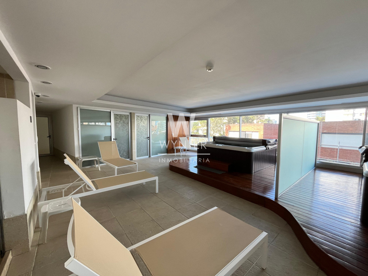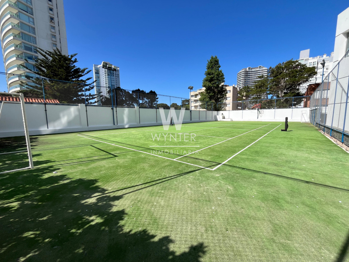 El edificio cuenta con recepción las 24 horas, servicio de mucamas, servicio de playa en verano, sauna húmedo y seco, sala de masajes, gimnasio, sala de juegos con ping pong y pool, sala de juegos para niños. En el piso 24 encontramos una sala de audio, sala de negocios, barbacoa y club house. En la planta baja cuenta con 4 parrilleros cerrados, cancha multifunción de césped sintético, piscina abierta climatizada y cerrada climatizada.