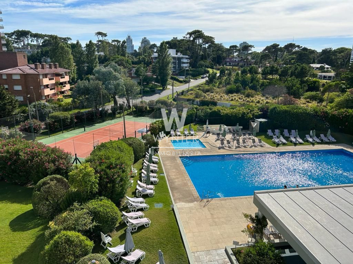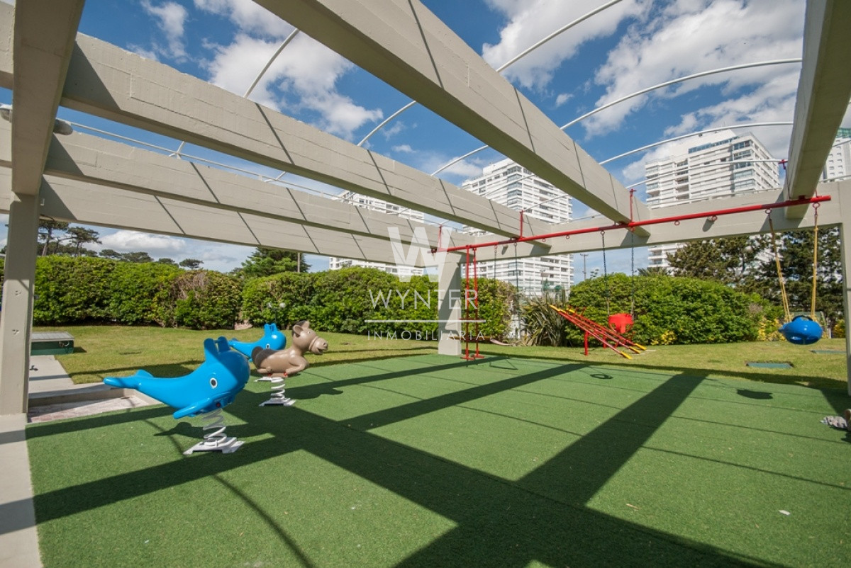 El edificio cuenta con recepción las 24 horas, servicio de mucamas todo el año, piscina climatizada abierta, sala de juegos, gimnasio, sauna, cancha de tenis, estacionamiento de cortesía y en temporada cuenta con restaurant, servicio de playa, lavado de ropa y de autos, y supermercado dentro del complejo.