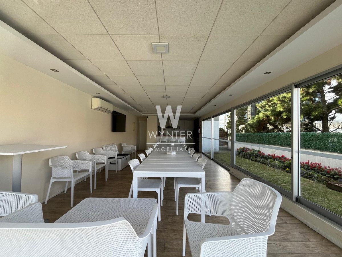 El edificio cuenta con porter铆a las 24 horas, servicio de mucamas, play-room para chicos, piscina climatizada abierta con bomba de calor, gimnasio, barbacoas de uso com煤n y servicio de playa en verano.